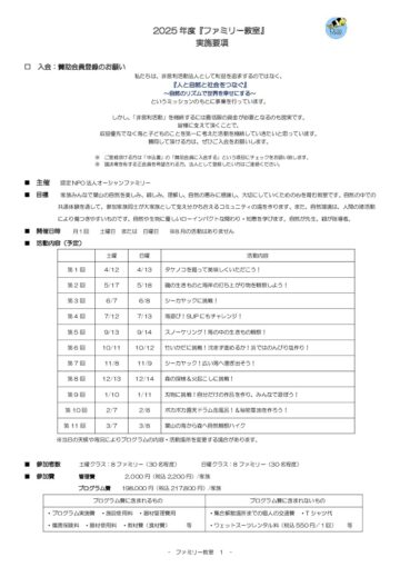 オーシャンファミリーとはスタッフ法人概要・沿革入会のご案内ボランティア募集寄付ファミリー教室マリンキッズPre葉山キッズschoolニッパーズ三宅島サマースクールガイドツアー指導者養成講座リーダーズ作戦会議連携・協働(Ⅰ 団体向け)連携・協働(Ⅱ 企業向け)連携・協働(Ⅲ 学校向け)連携・協働(Ⅳ 行政向け)ファミリー教室葉山マリンキッズPre葉山ニッパーズ葉山キッズschool三宅島サマースクール体験クラブ指導者養成連携協働保全活動