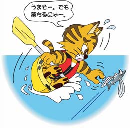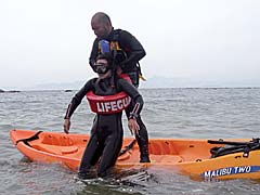 溺者をカヌーに引き上げるのと同時に、背面から海に落ちる