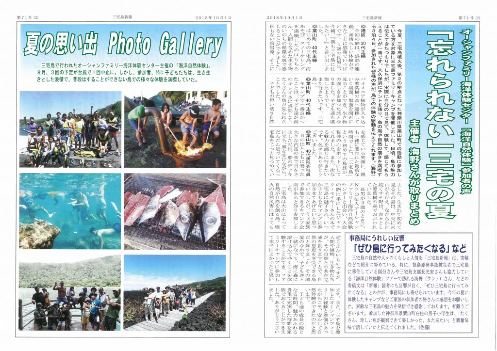 今夏開催しました「三宅島ファミリーキャンプ」の記事が、三宅島新報第71号に掲載されました。島の方々にとっても、島の活性に向けた活動として今後も注目されていくことと思います。寄稿にご協力をいただきました参加者の皆様、ありがとうございました。...