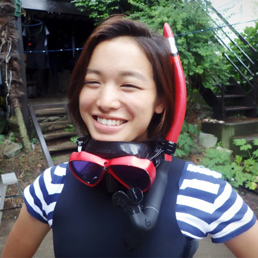 栃木の山の中で育ち海に憧れが・・・。ダイビングをはじめ海に惹かれ自然と関わる仕事がしたいと考えていた時、偶々行った三宅島でうんぱぱとの運命的な出会いがあり、オーシャンファミリーに来ることになりました。
